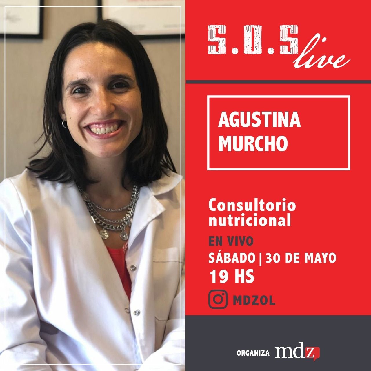Hoy en S.O.S live, segmento de Mendoza Prende, tenemos consultorio nutricional con Agustina Murcho de @nutrición.ag. La licenciada en nutrición es reconocida en las redes sociales y en medios de comunicación por informar sobre la importancia de la alimentación consciente y cómo comer sin miedo.