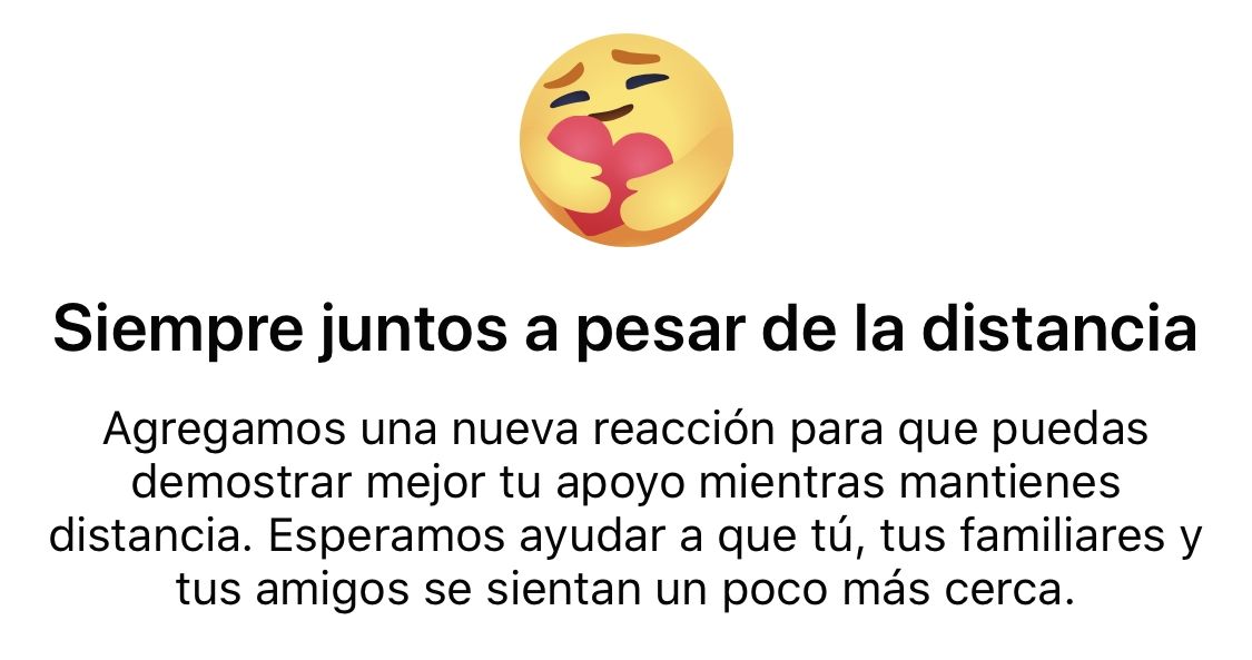 Desde ahora en Facebook, esta nueva opción para reaccionar -‘Care’, en inglés- es un emoji que abraza cálidamente a un corazón. Es, desde ahora, la séptima opción que aparece en la red social. Podrá usarse para reaccionar a publicaciones, comentarios, imágenes, vídeos y otros contenidos, y estará disponible para la versión de escritorio como en la versión para dispositivos móviles.