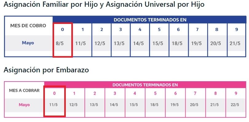 Con respecto a la Asignación Universal por Hijo y a la Asignación Familiar por Hijo, mañana cobrarán sus haberes los beneficiarios cuyo DNI termina en 0. También se pagarán las Asignaciones Familiares de Pensiones no Contributivas. Recién el lunes se comenzarán a pagar las asignaciones por embarazo.