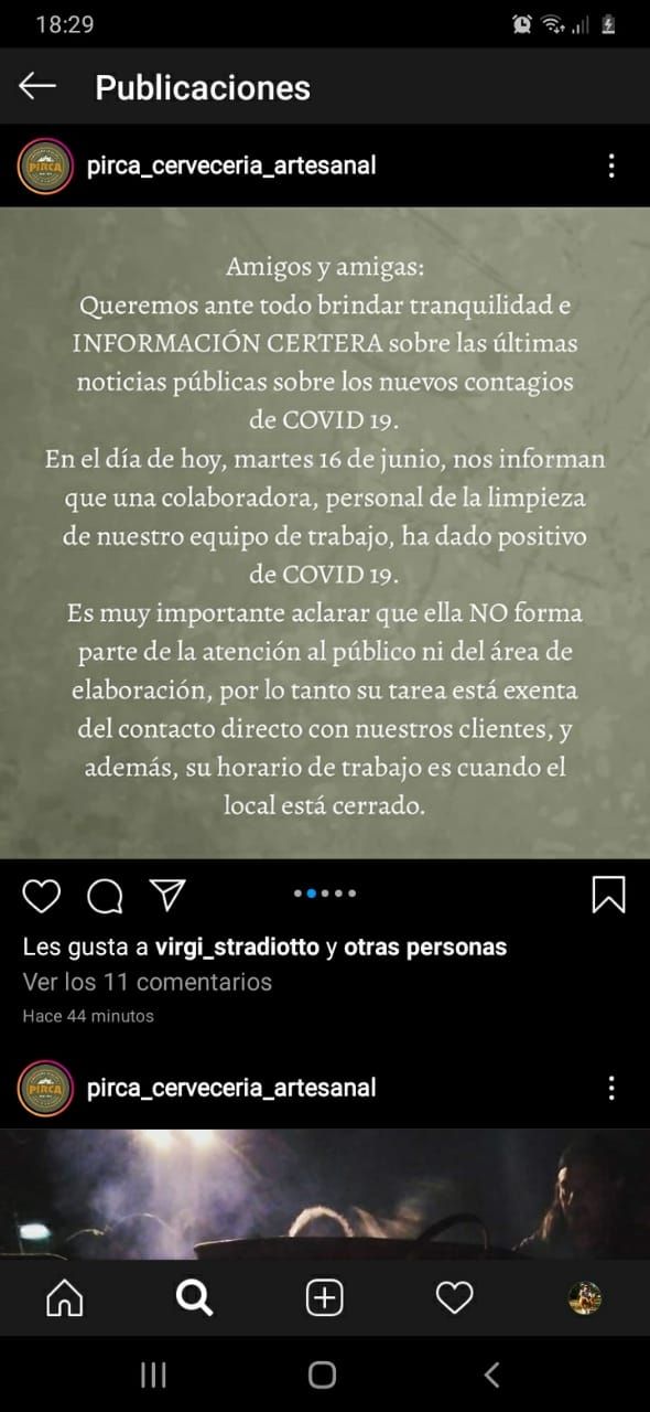 Además, aclararon que desinfectaron el local de Luzuriaga y que todos los que trabajan en el lugar han "llamado al 0800 y hemos sido aislados estrictamente en nuestros hogares por no presentar síntomas. Y estamos en contacto con ellos y el Gobierno".