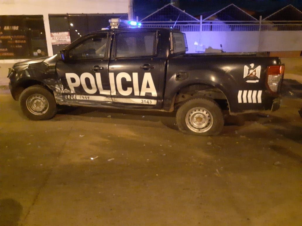 Al toque llegó la Policía en el móvil 3143, una Ford Ranger que opera en la subcomisaría de Coquimbito. A partir de la información que recibieron, los efectivos detectaron al auto de los delincuentes y lo empezaron a seguir. Para detenerlo lo tuvieron que chocar. Pero adentro del coche estaba solo uno de los fugitivos.