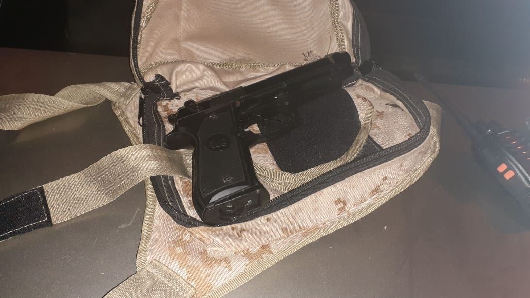 Quedaba uno, que escapó a toda carrera y se metió en una casa de la calle Barrionuevo al 3443. Ahí adentro estaba el caco, todavía disfrazado de policía y escondido bajo una cama. En una riñonera cargaba una pistola 9 mm marca Bruni modelo 92'.