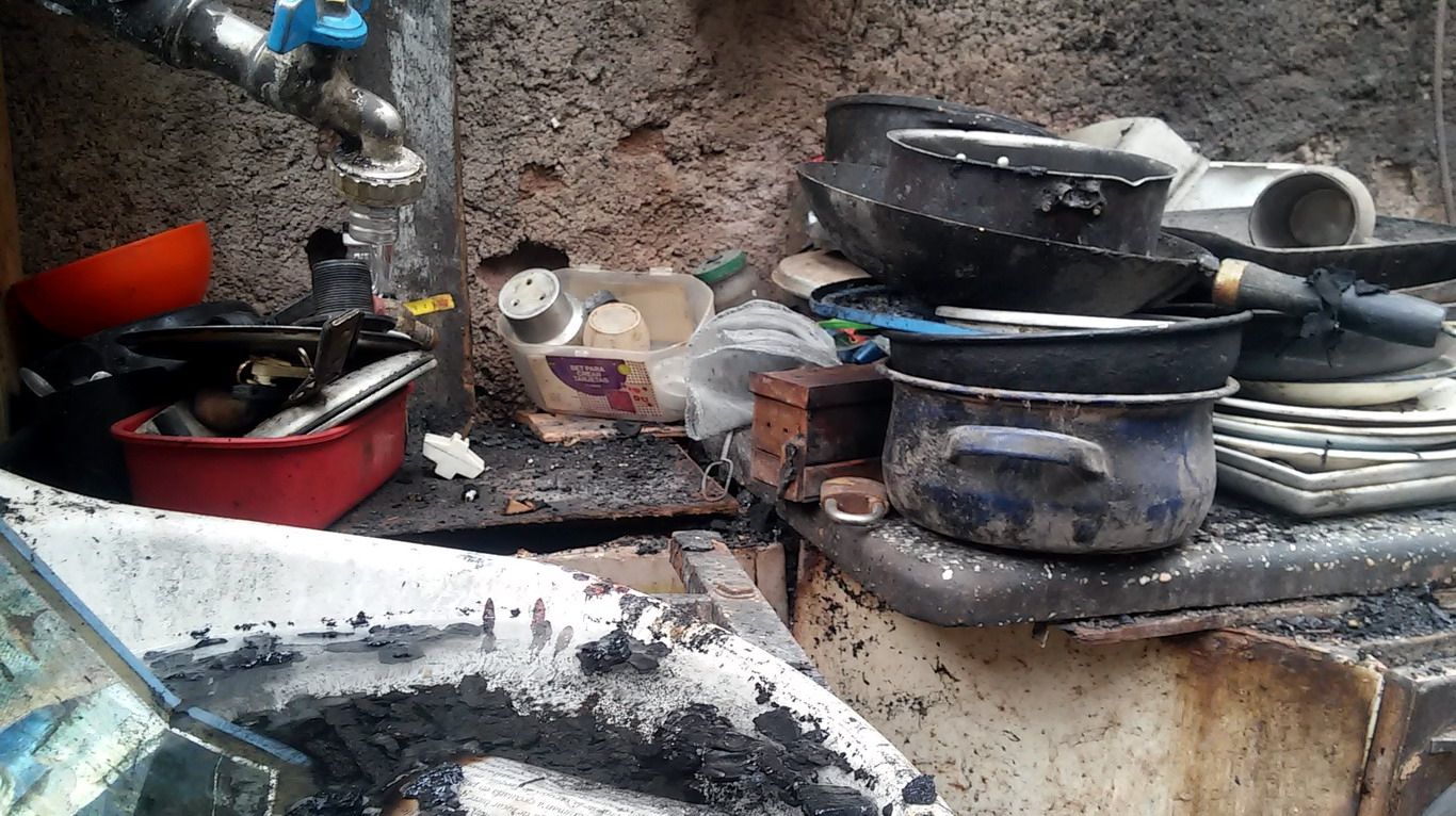 Los hombres saben de construcción y tiene varios amigos albañiles que ayudarían, pero no tienen los materiales y están amontonados y hace frío y, ahora mismo, está lloviendo.