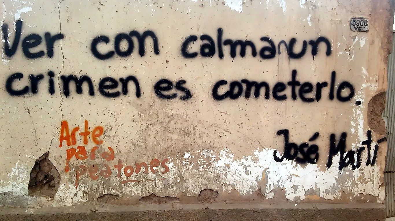 Junto a la casa, hay un grafiti desde hace años que anticipa y parece resumir todo el paisaje “Ver con calma y crimen es cometerlo”. No cometamos ese crimen.