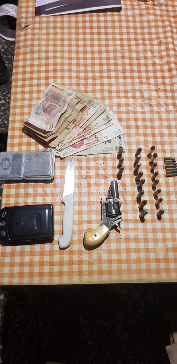 Efectivos de la Policía de Mendoza allanaron la casa del acusado y secuestraron 9 envoltorios que contenían en total 14,7 gramos de cocaína; dos envoltorios que contenían 2,8 gramos de marihuana; dos balanzas de precisión y dinero en efectivo. Además, secuestraron un revólver calibre 32 y 20 municiones de calibre 32, 38 y 22 y le incautaron el celular en el hospital donde está internado recuperándose. Desde la Justicia Federal aguardan a que le den el alta para imputarlo.