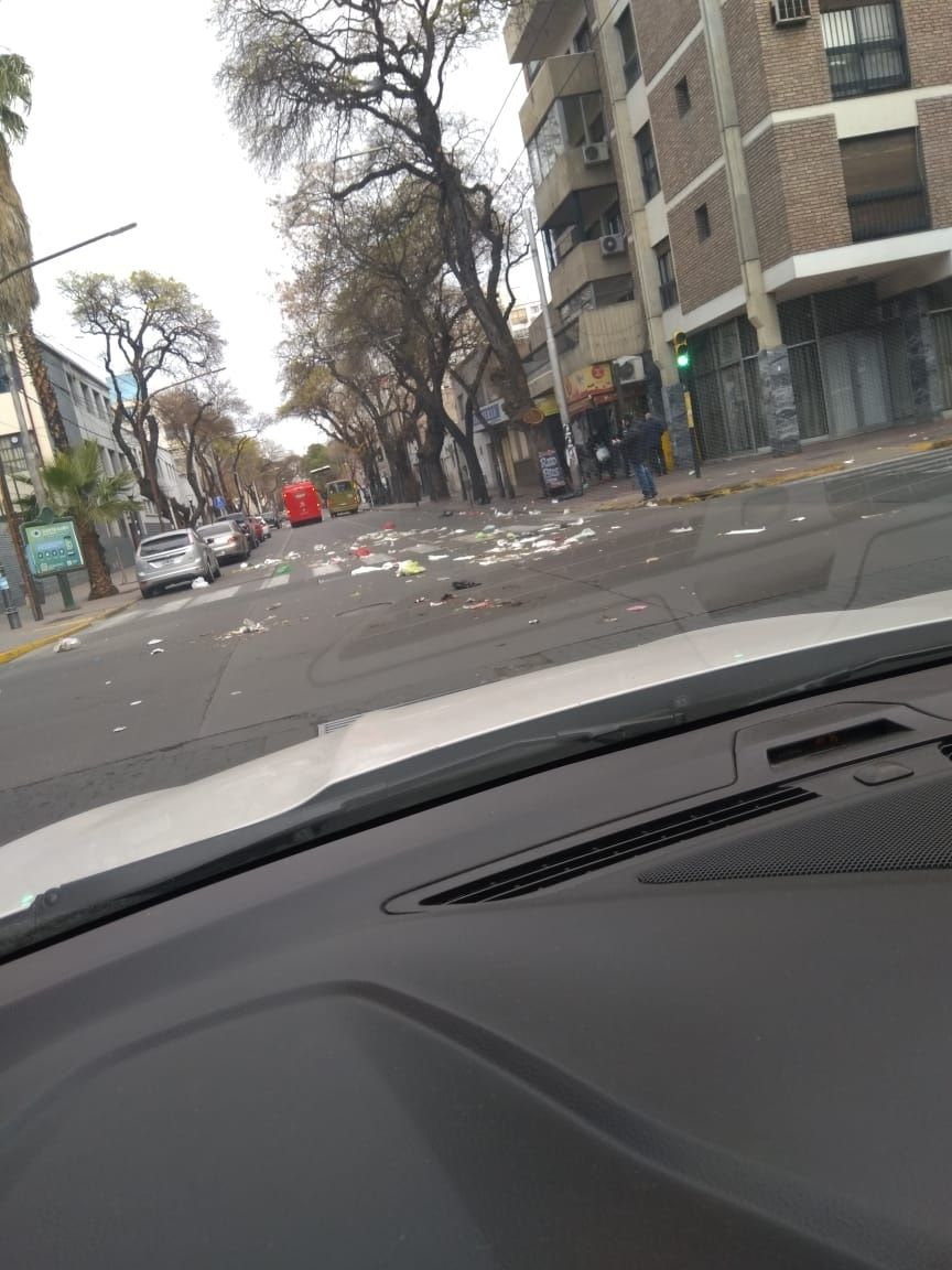 Los municipales desecharon la basura por toda la 9 de Julio, desde Rivadavia hasta Colón. Son varios los vecinos que se quejaron por el olor y el asfalto sucio.