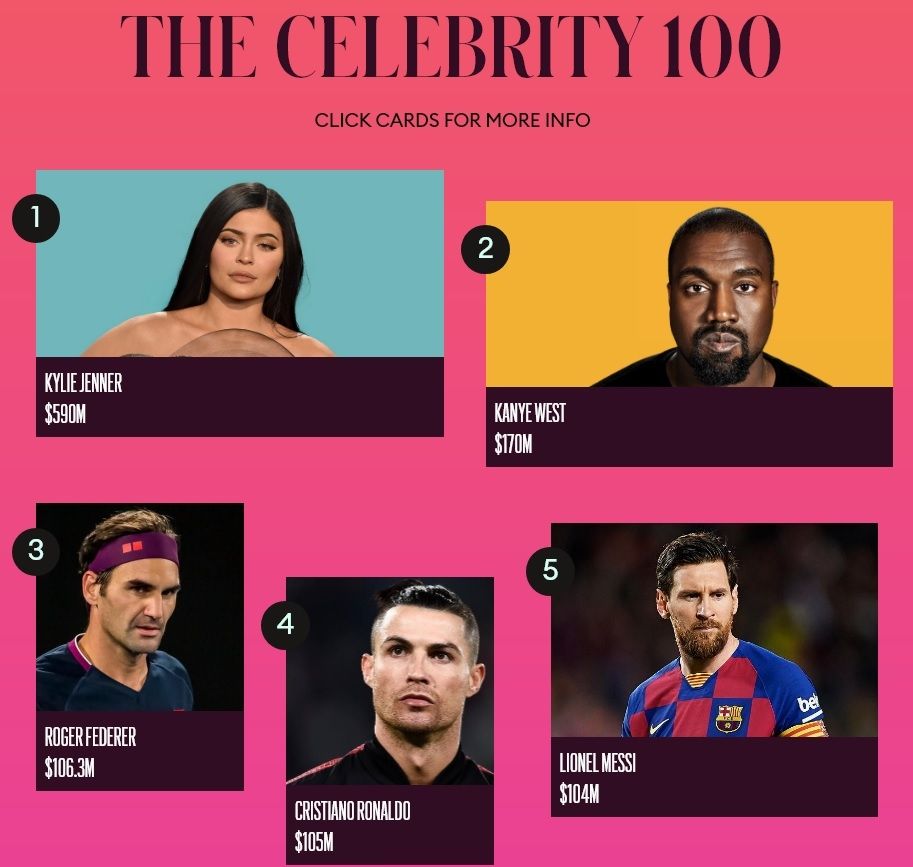 La prestigiosa revista económica Forbes publicó hoy su lista con las celebridades mejores pagas del 2020, y en el primer puesto se ubicó una mujer que si bien se había hecho famosa como estrella de un reality show, ahora es una empresaria de éxito: Kylie Jenner.