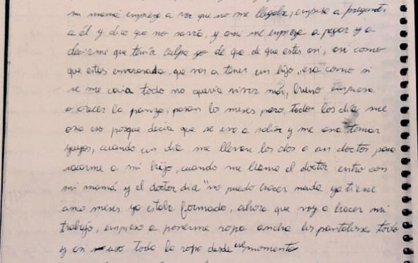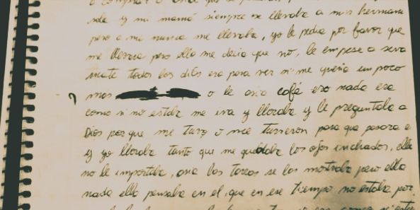 Las páginas del diario son difíciles de leer: "él me saca la remera, después el pantalón y la bombacha, me sienta en una cómoda (...) En eso entra mi mamá y pregunta ¿qué estás haciendo?, y no dice nada, y él empieza a hablar de otra cosa mientras yo me pongo la ropa. Y yo pensé '¿cómo no se da cuenta' (...) Y me fui a llorar".