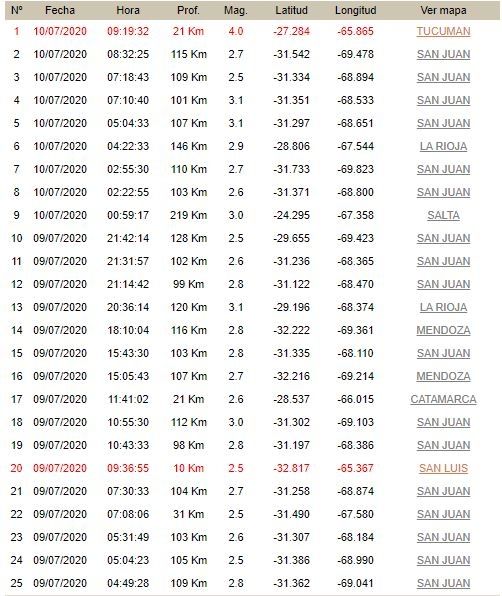 Este viernes se registraron 6 temblores en lo que va del día y en el día de ayer se registraron 5. También tembló fuerte en Tucumán esta mañana.