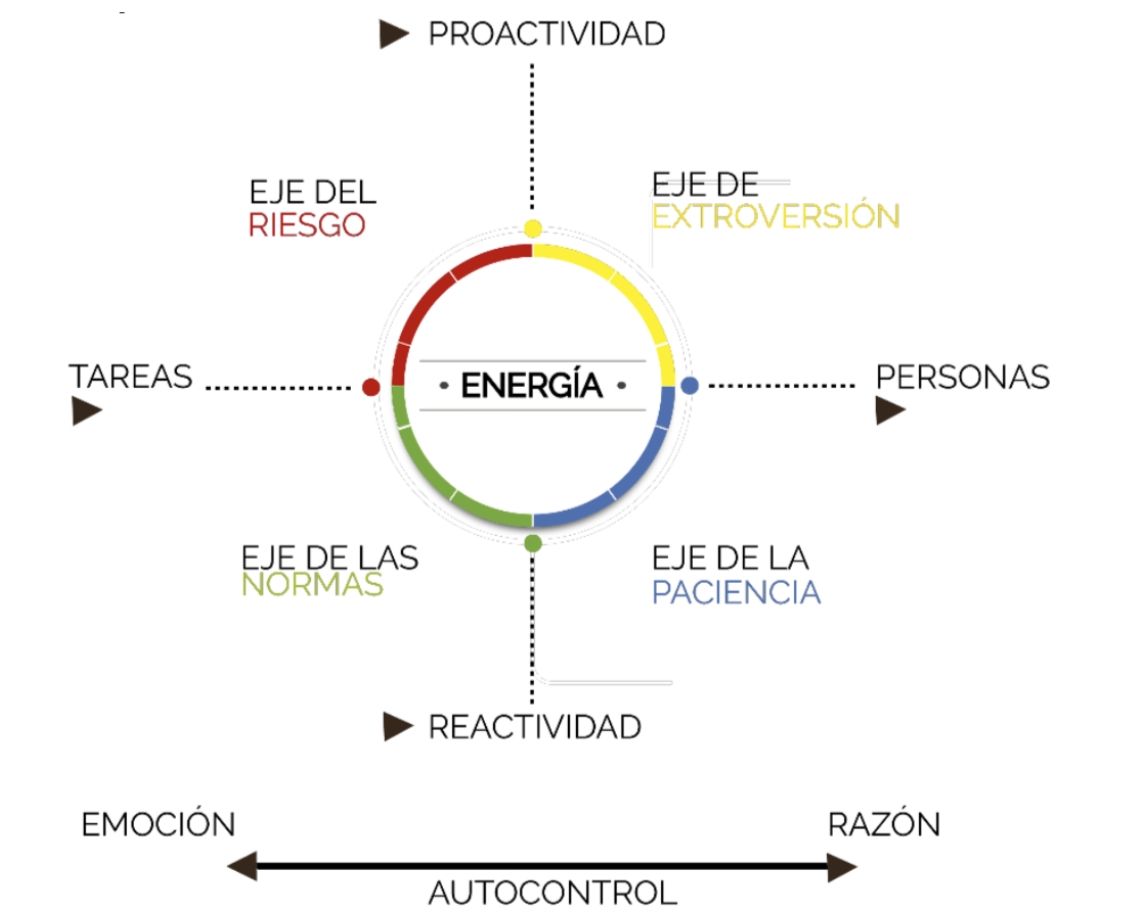 Eje del Riesgo: cuando la gente se orienta a las tareas de manera proactiva. Este eje mide el deseo de una persona por alcanzar resultados, nivel de iniciativa y deseo de manejar situaciones. En definitiva el grado en que la persona asume riesgos para lograr resultados.