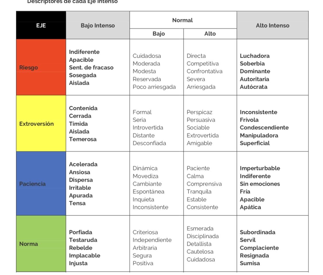 Una persona con alto nivel de riesgo puede ser vista como “directa”, “competitiva”, “confrontativa”, “severa” y “arriesgada” a la hora de conseguir resultados.