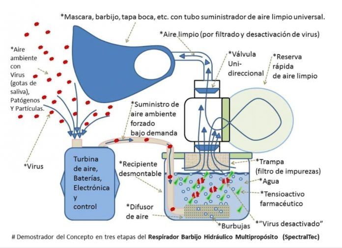 - Respirador Barbijo Hidráulico Multipropósito. Lo creó el ingeniero Ezequiel Pawelko, quien comentó que estaba en San Rafael (aunque no es oriundo de el departamento sureño) cuando empezó a pergeñar la idea de este revolucionario dispositivo contra el Covid-19. El singular barbijo permite respirar aire limpio sin esfuerzo alguno a la vez que garantiza una capacidad única de eliminación del virus y sus partículas.