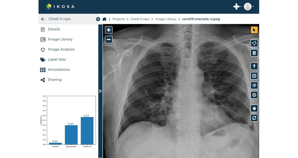 - Covid-X. Un equipo de médicos, investigadores y programadores desarrolló una aplicación para detectar el coronavirus en tan sólo tres minutos. Esta app de diagnóstico rápido es gratuita y según sus creadores tiene una efectividad del 90%. Nacida como una alternativa rápida a los test tradicionales, Covid-X se basa en un software que realiza un análisis automatizado de una radiografía de tórax.