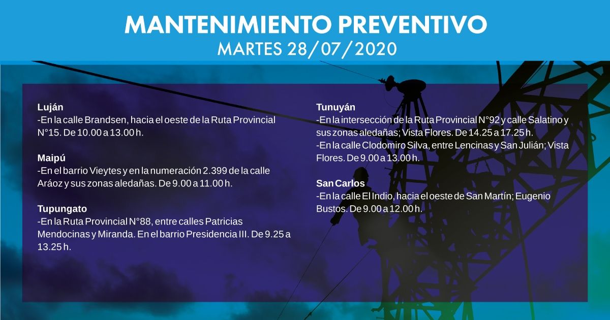 Hoy habrá afectación del servicio eléctrico en las siguientes zonas y horarios. Estas tareas de Edemsa se realizan bajo los protocolos sanitarios establecidos para Covid-19.