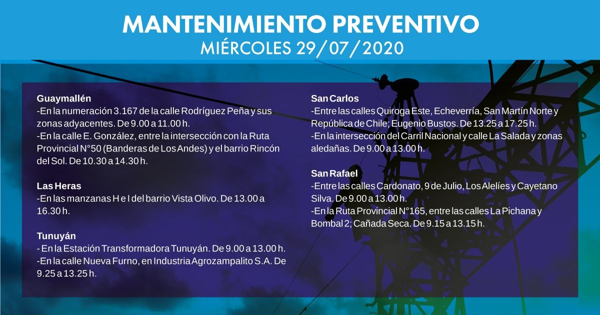 Hoy habrá afectación del servicio eléctrico en las siguientes zonas y horarios. Estas tareas de Edemsa  se realizan bajo los protocolos sanitarios establecidos para Covid-19.