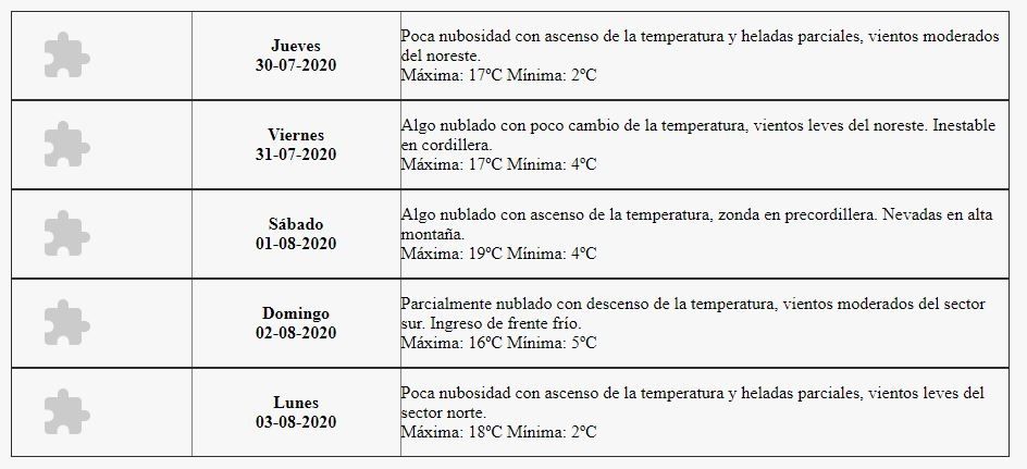 "Algo nublado con ascenso de la temperatura, zonda en precordillera. Nevadas en alta montaña", dice el pronóstico.
