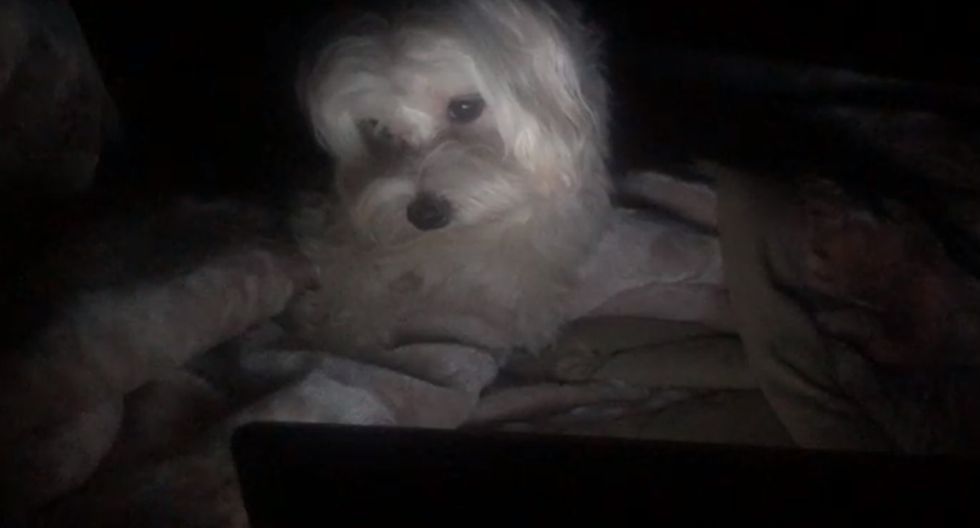 Los dueños se asombraron al ver que su can estaba echado cómodamente en la cama disfrutando de la película. ¡Increíble!