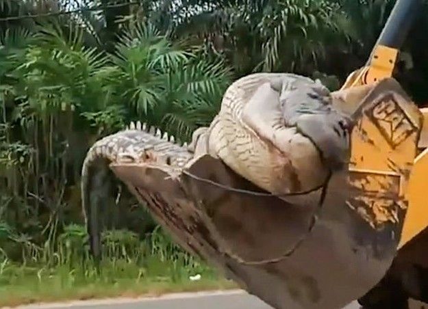 Después de dos días en cautiverio, el cocodrilo murió de agotamiento. La bestia de media tonelada era tan grande que hubo que llevarla a su lugar de entierro en una excavadora.