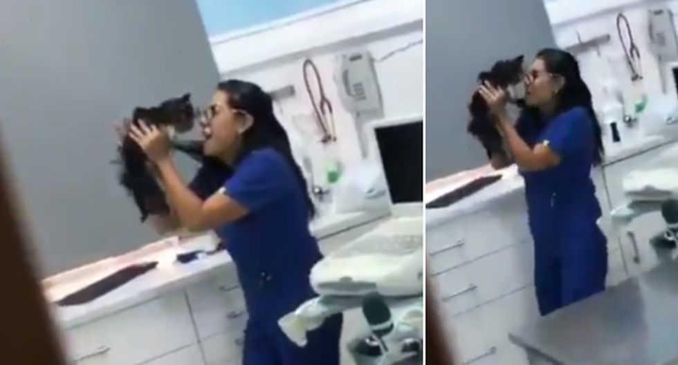 En el mismo se ve a la médica veterinaria atendiendo a un gato y bailando con él de una manera muy tierna.