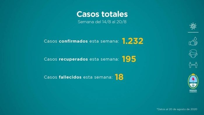 El ministerio de Salud de Mendoza dio a conocer el informe semanal de la situación de la provincia frente a la pandemia de coronavirus.