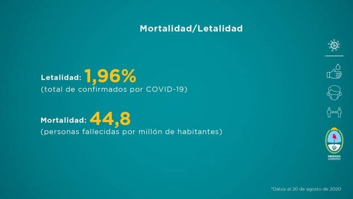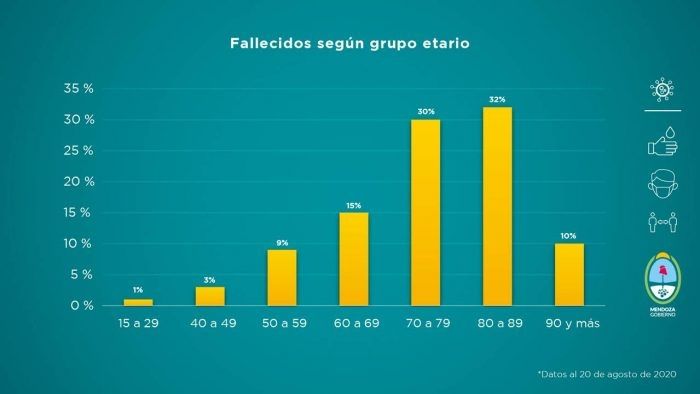 Al observar el porcentaje de fallecidos según el grupo etario, Mendoza cuenta con una mortalidad de 44,8 por millón de habitantes y de letalidad 1,96% por total de confirmados por COVID-19.