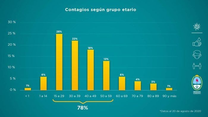 De los datos oficiales también surge que en la franja etaria de los 15 a los 59 años es donde más contagios se producen y también donde se da el mayor porcentaje de recuperación. Sigue manteniéndose en el 78% de los infectados.