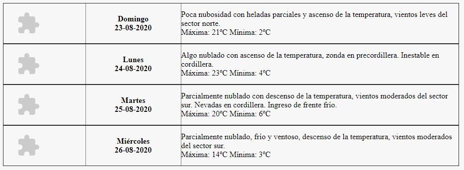 Los mendocinos podremos disfrutar este domingo de otra jornada espectacular, con temperaturas de primavera. Si bien por la mañana estará bien frío, por la tarde el termómetro alcanzará los 21 grados centígrados. Sí, será un día primaveral.