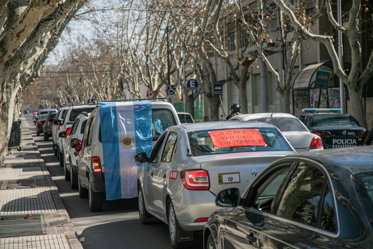 La “Caravana y bocinazo” partió de la Cámara Empresaria del Sur de San Rafael, ciudad donde, tras cinco meses sin casos positivos, se dispararon más de un centenar de casos positivos en menos de una semana, lo que provocó que el intendente Emir Felix volviera a ordenar el cierre de los locales gastronómicos comerciales.