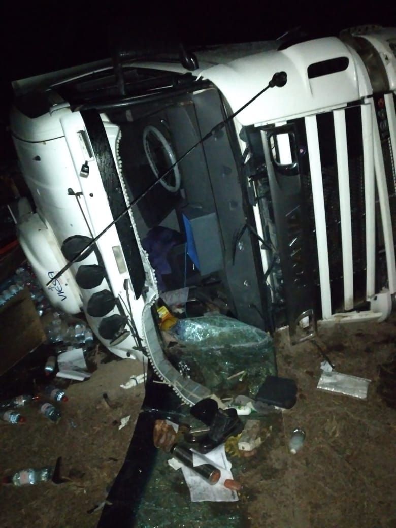 El accidente se registró a las 2.25 del miércoles cuando el chofer de un camión marca Scania que transportaba botellas de agua mineral perdió el control del rodado y volcó a un costado de la ruta.