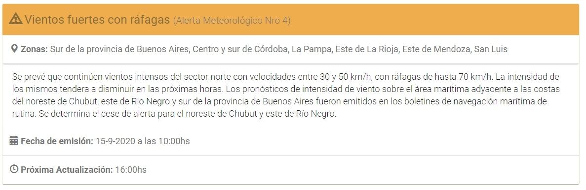 A pesar de que el Zonda no bajará, al menos en una región mendocina sí habrá ráfagas. El Servicio Meteorológico Nacional emitió un alerta por vientos fuertes que afecta al este mendocino.