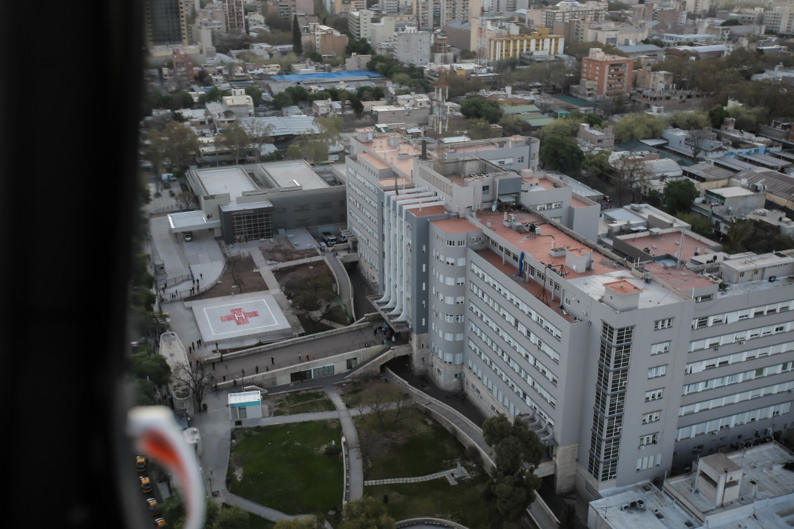 Por la construcción de un nuevo pabellón, el helipunto debió ser trasladado a la lateral sur del Hospital. Se trata de una plataforma de hormigón de 400 metros cuadrados, elevada unos 90 centímetros para facilitar las maniobras aeronáuticas.