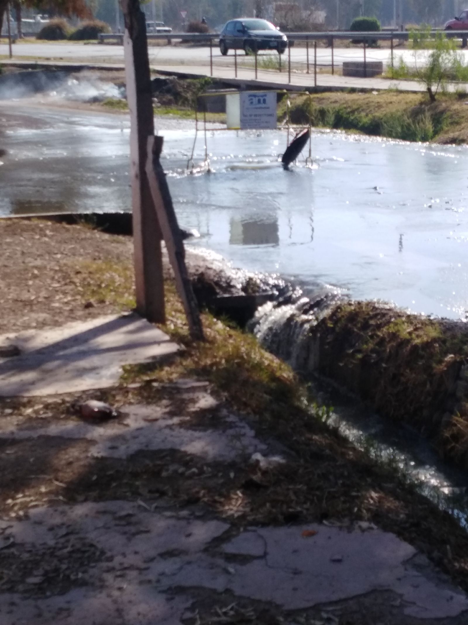 Pasé y miré: desborde cloacal inundó la lateral del acceso en Las Heras