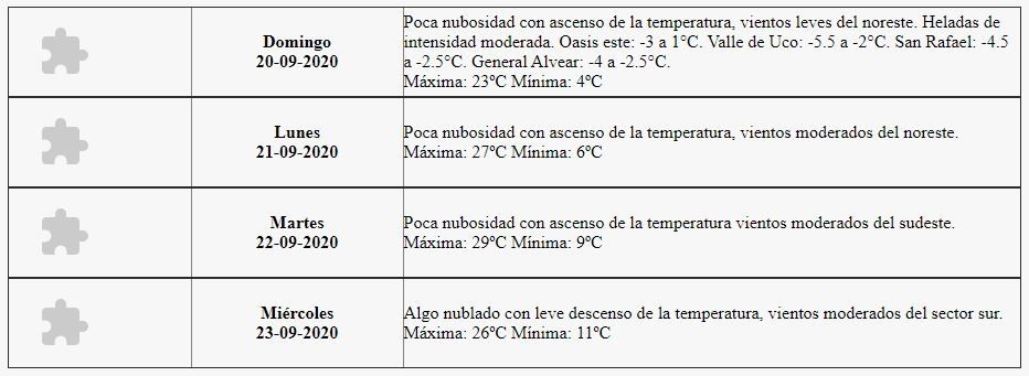 "Poca nubosidad con ascenso de la temperatura, vientos leves del noreste. Heladas de intensidad moderada", indica el pronóstico.