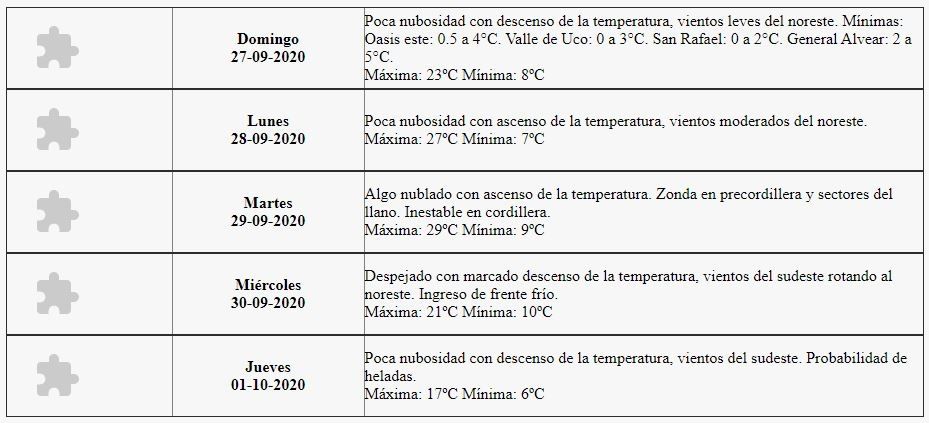 "Poca nubosidad con descenso de la temperatura, vientos leves del noreste", indica el pronóstico.
