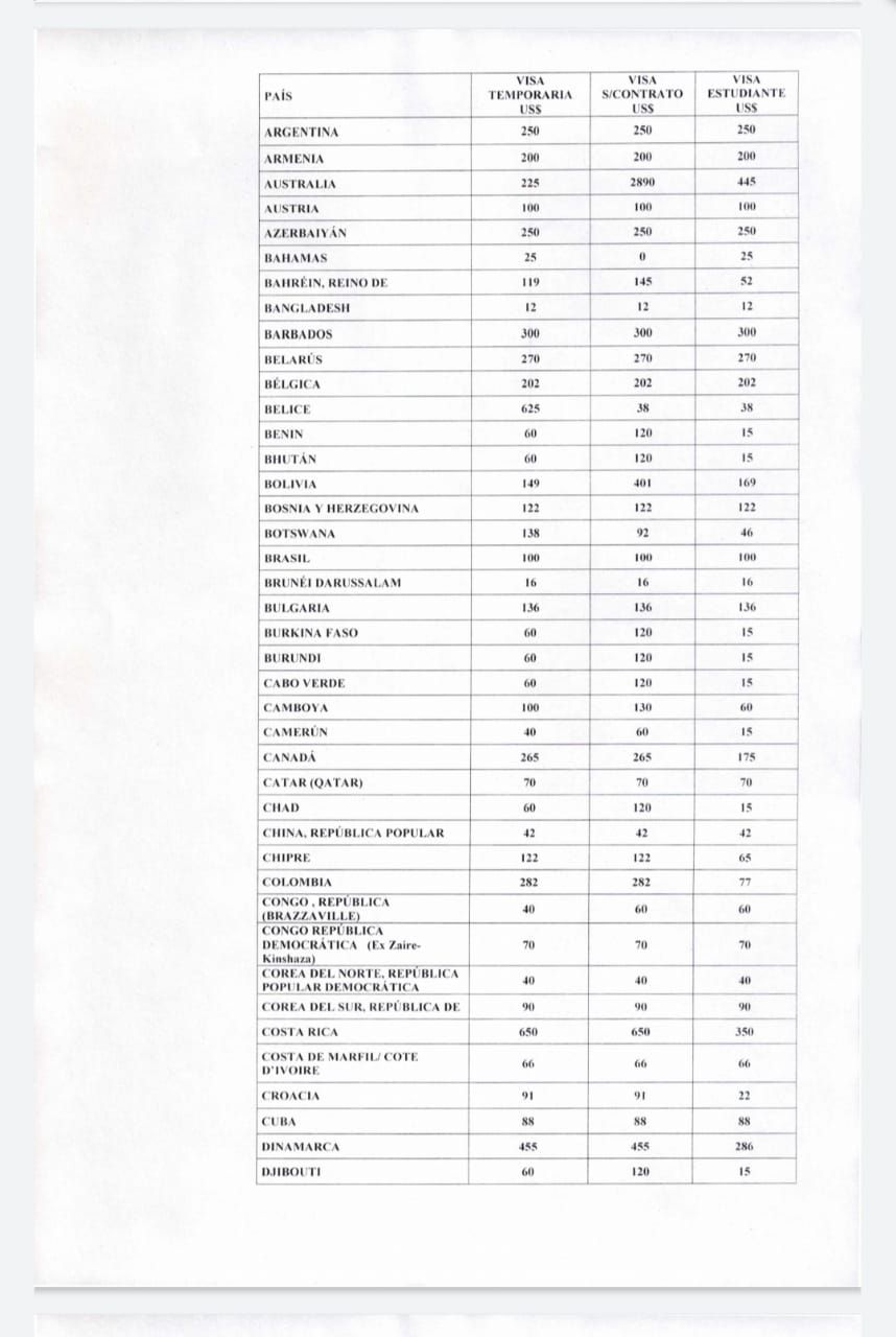 Para los argentinos el costo de la visa temporaria, visa sin contrato y visa de estudiante es de $250 dólares.