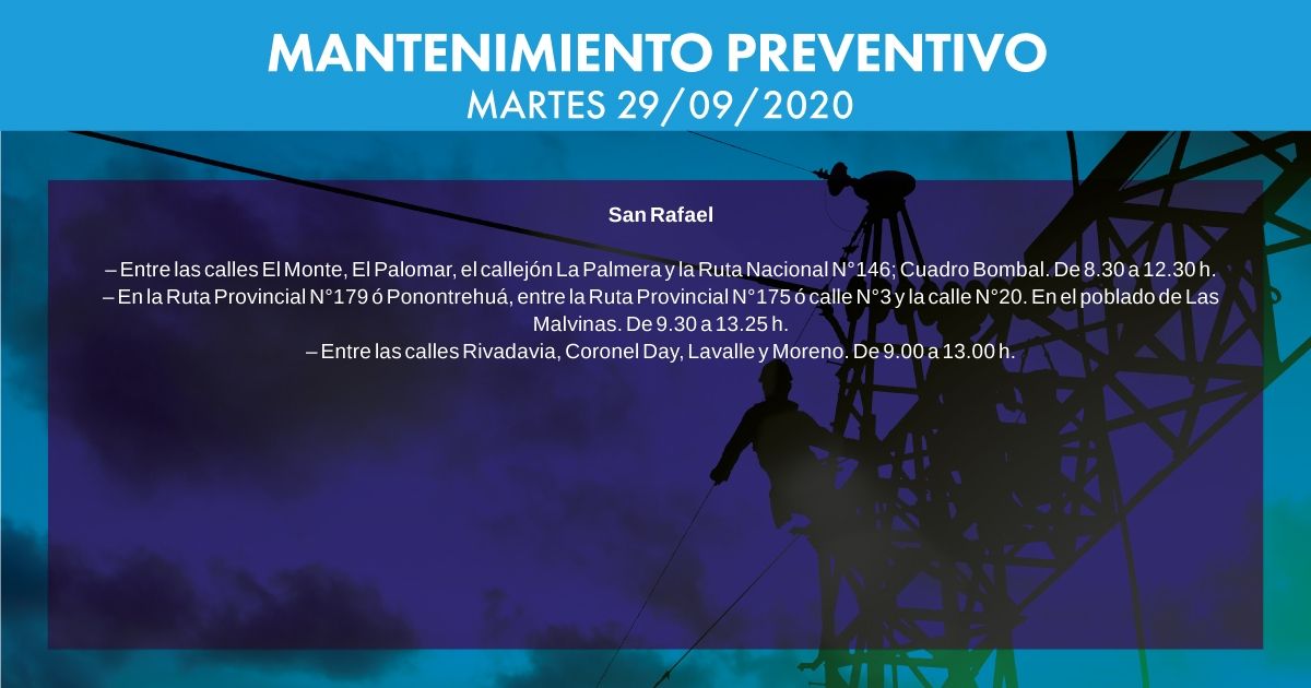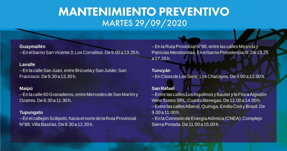 Hoy habrá afectación del servicio eléctrico en las siguientes zonas y horarios. Estas tareas de Edemsa  se realizan bajo los protocolos sanitarios establecidos por el covid-19.