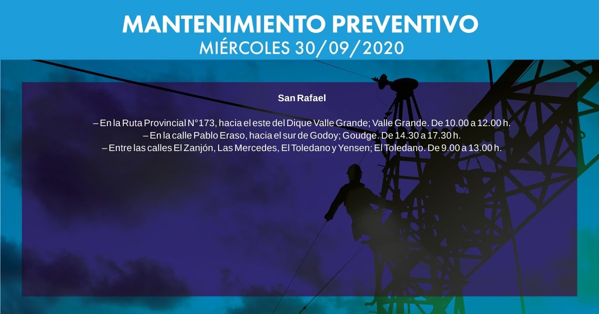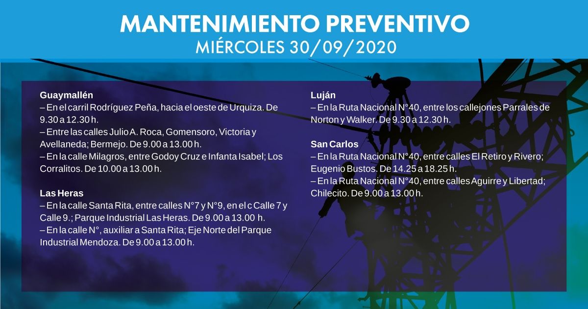 Hoy habrá afectación del servicio eléctrico en las siguientes zonas y horarios. Estas tareas de Edemsa se realizan bajo los protocolos sanitarios establecidos por el Covid-19.