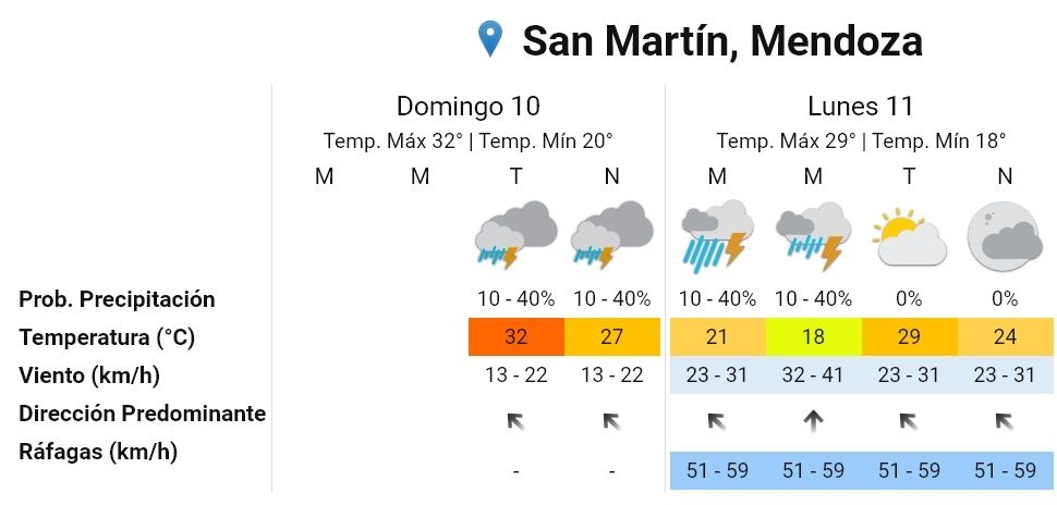 Se esperan tormentas fuertes para una zona de Mendoza en la madrugada