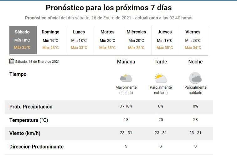 Para esta jornada, se espera una mínima de 18ºC y una máxima de 25ºC con una nubosidad variable pero que se mantendrá de modo parcial durante todo el día.