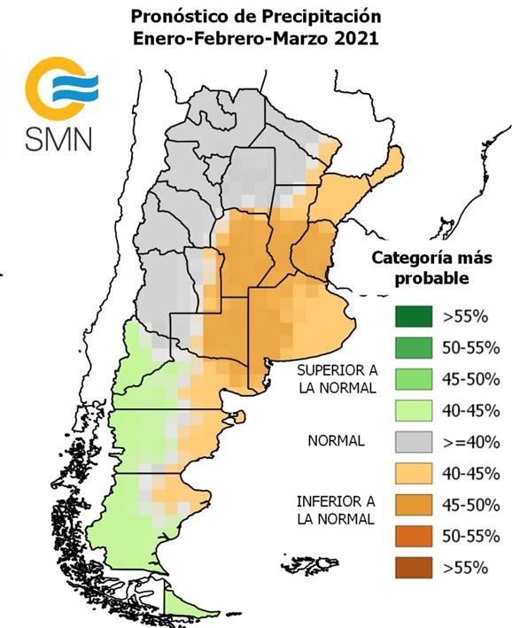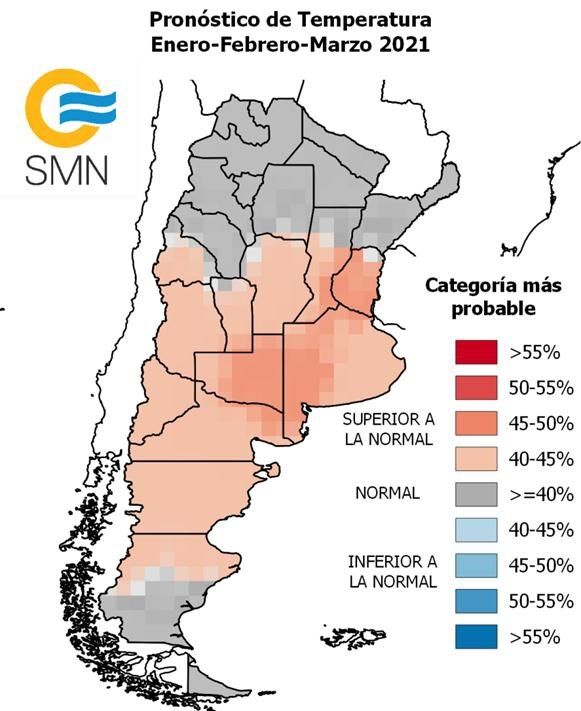 En el pronóstico trimestral correspondiente a los meses de enero, febrero y marzo se explica que hay un 95% de probabilidades de que continúen las condiciones de La Niña, un fenómeno climático que se caracteriza por mantener temperaturas frías y perdurables sobre la zona ecuatorial del océano Pacífico. Esta condición suele provocar en la Argentina y buena parte del Cono Sur americano episodios de sequías y altas temperaturas en épocas estivales.