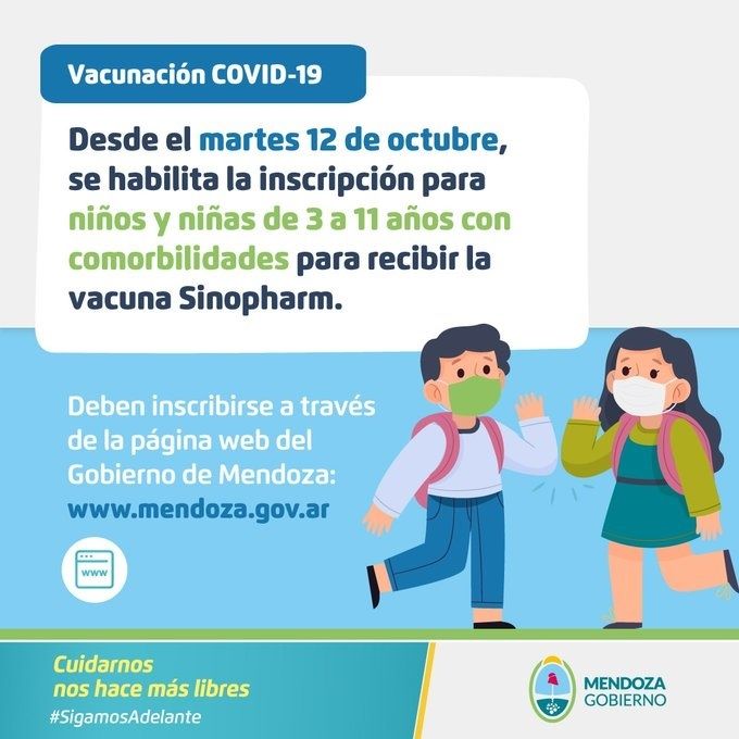 La vacunación pediátrica en Mendoza tendrá como objetivo a niños con enfermedades de base. Para ello se utilizarán dosis de Sinopharm.