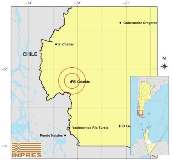 El lugar exacto del sismo fue a 256 kilómetros al noroeste de Río Gallegos; 566 kilómetros al noroeste de Ushuaia; y 4 kilómetros al noreste de El Calafate.