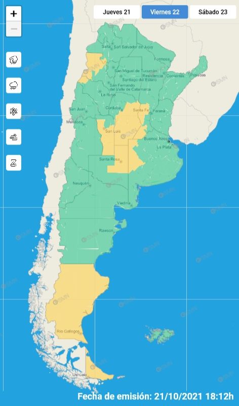Según la página oficial del Servicio Meteorológico Nacional la temperatura mínima esperada en la provincia de Mendoza será de 16° y la máxima de 21º.
