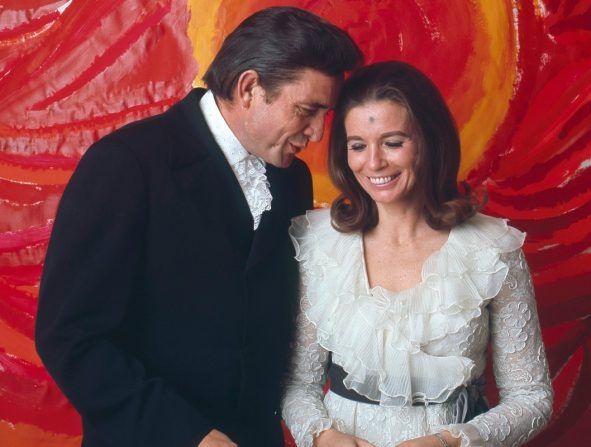 Musicalmente Johnny Cash tuvo dos épocas de oro, la primera que te comentaba donde hay temones como ¨I walk the line¨, ¨Folsom prison blues¨, ¨Cocaine Blues¨, ¨Cry cry cry¨ y mención aparte para ¨Ring of fire¨, mi favorita no solo musicalmente sino por su letra que fue escrita por June para él y también para ella, ya que habla del momento incómodo de cuando se estaban enamorando pero cada uno seguía infelizmente casado. Y ese amor que nacía entre ellos era realmente un anillo de fuego como dice la canción (El amor es una cosa que arde y que hace un anillo de fuego. Trayéndome un deseo salvaje. Me caí en ese anillo de fuego). La segunda época de oro ya te la cuento en breve.