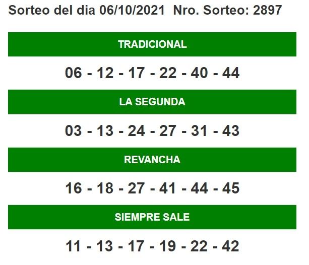 Además, por ser miércoles el Quini 6 también realiza su sorteo, que será el número 2897 de la historia y cuenta con un pozo acumulado de $290 millones de pesos.