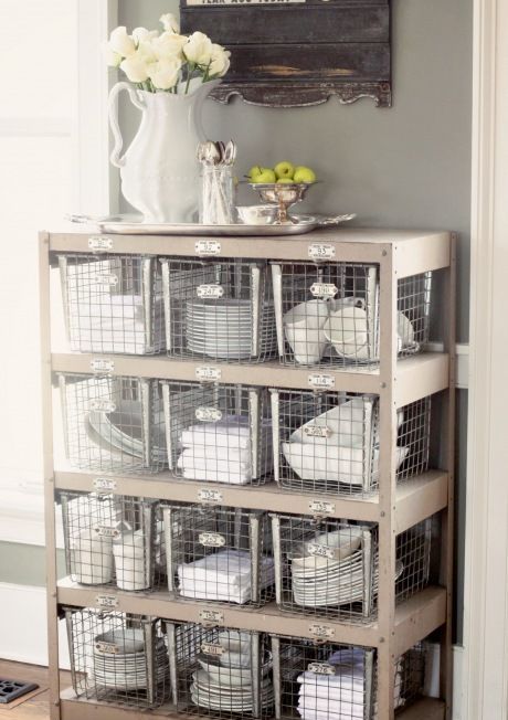 Los canastos de metal son la mejor opción para aquellos que les gusta la decoración industrial. Quedan muy bien en la cocina, para colocar dentro los utensilios, y como no es un material muy sensible, también se pueden colgar de la pared y utilizar para guardar las herramientas de jardinería.