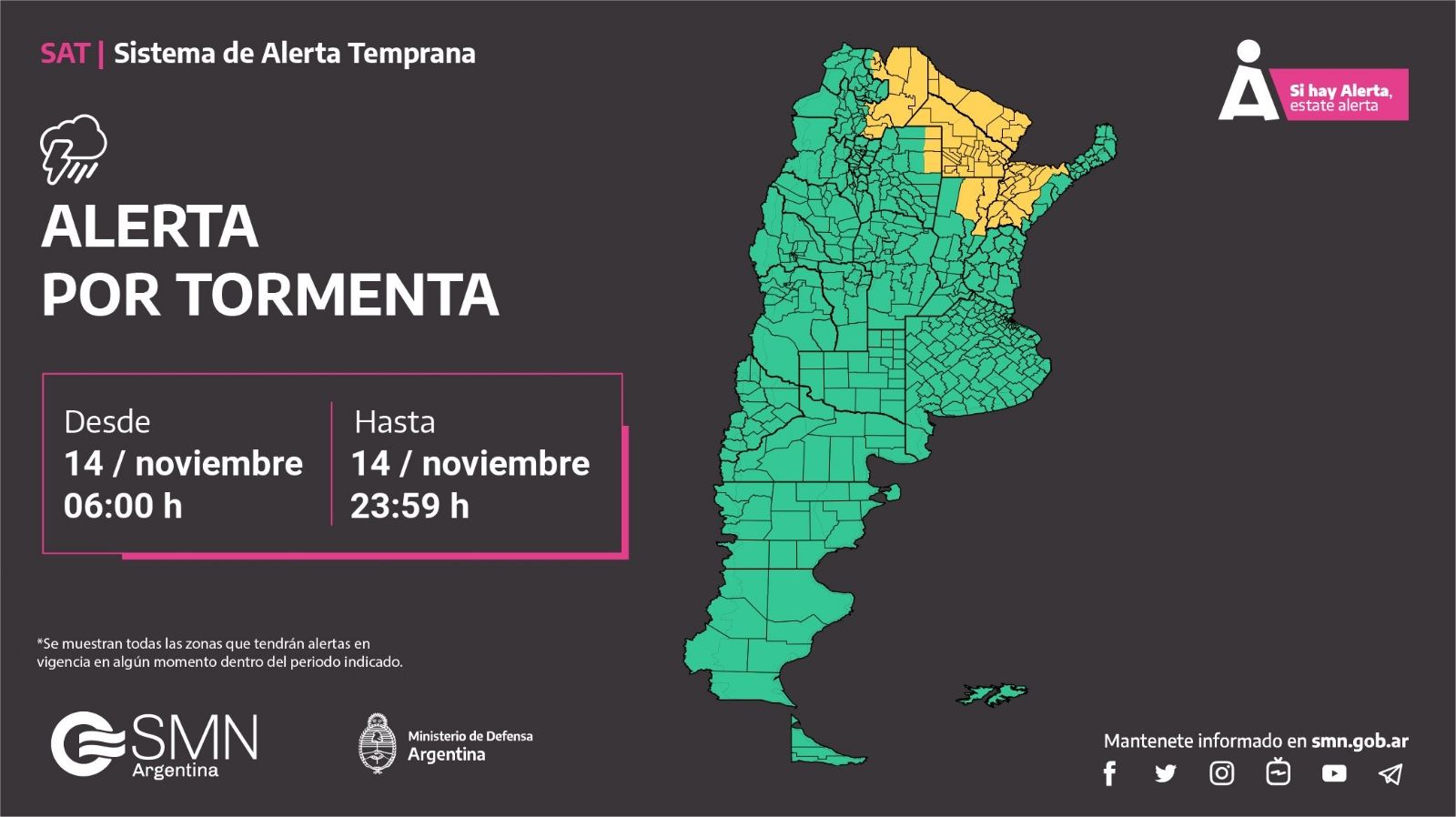 Alerta por tormentas intensas y lluvias fuertes en varias provincias