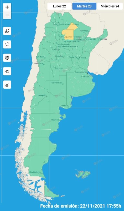 Según la página oficial del Servicio Meteorológico Nacional la temperatura mínima esperada en la provincia será de 18° y la máxima de 31º.