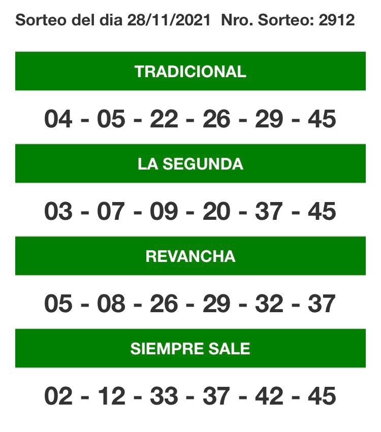 Números ganadores del Quini 6 del 28 de noviembre de 2021