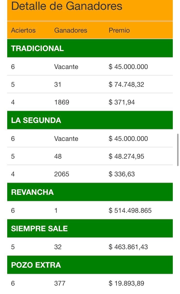 Los dos primeros sorteos (tradicional y segunda) tienen tres pozos. El más grande (primer premio) se reparte entre los que obtengan seis aciertos, el segundo premio se reparte entre los apostadores que tengan cinco aciertos y el último entre los que tengan cuatro. El sorteo revancha solo se gana con seis aciertos, no hay premio por tener cinco o cuatro. El Quini que siempre sale se reparte primero entre los que tengan seis aciertos, si no hay ganadores reparte entre los que tengan cinco y así sucesivamente hasta que haya ganadores. Para el Pozo Extra se tienen que tener seis aciertos contando los primeros tres sorteos y contando los repetidos solamente una vez.